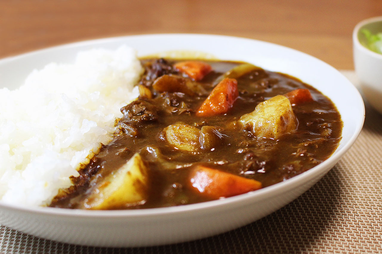 Japanese curry rice is one of the most popular dishes in Japan, alongside Ramen. Curry was introduced to the United Kingdom in the 18th century from India. Afterwards, European style curry was introduced to Japan which was then arranged to Japanese style. The characteristic of Japanese curry rice is that is uses flour to thicken the curry. Additionally, Japanese style curry is distinctive as curry is poured onto sticky Japonica rice. Solid form curry roux (curry stock) arrived on store shelves and it became a familiar dish for Japanese people since it was easy to cook at home.